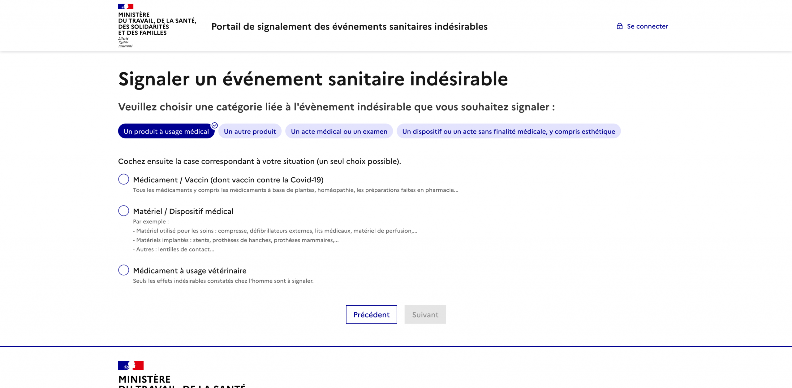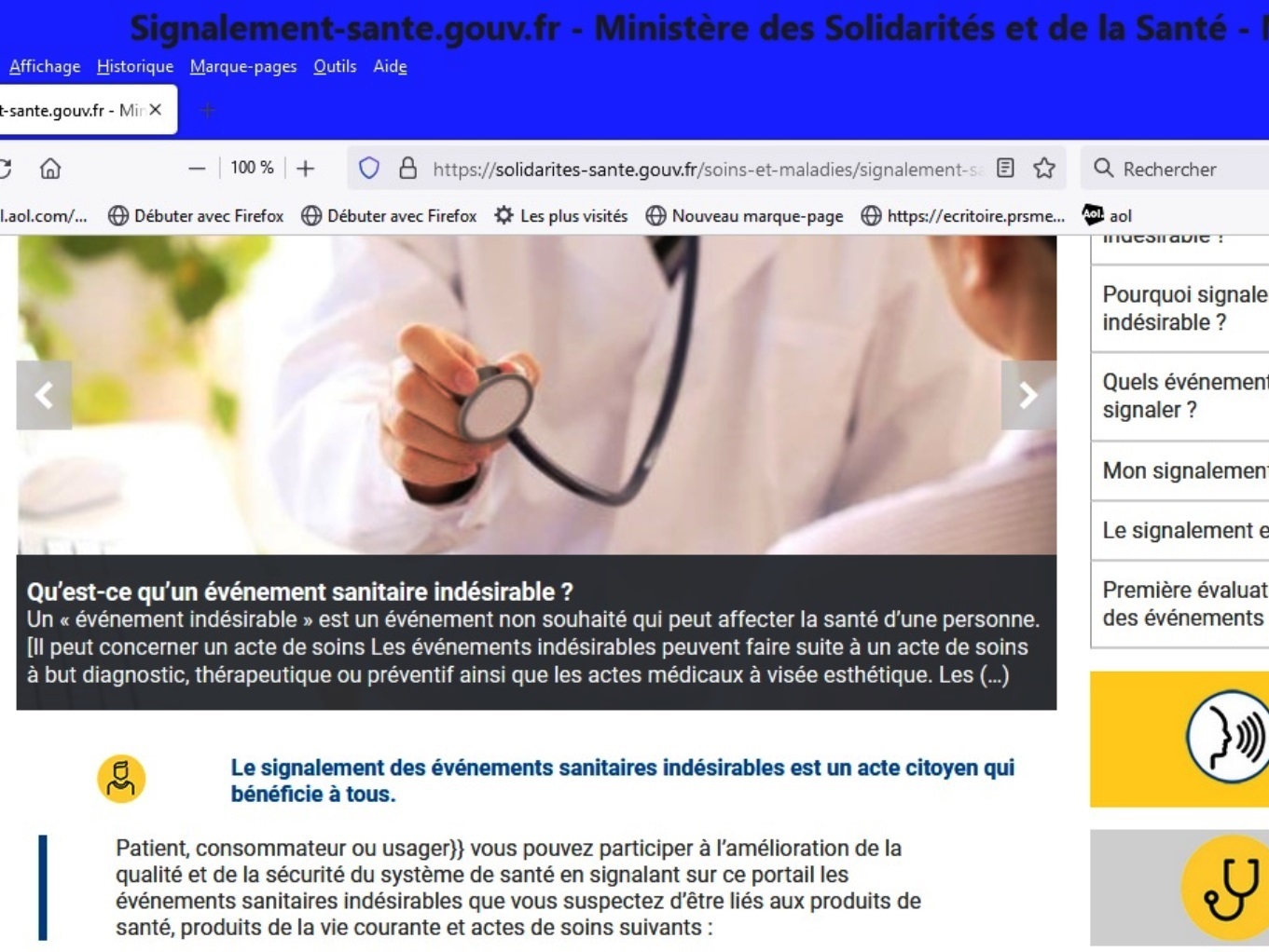 Site "https://signalement.social-sante.gouv.fr/" pour faire une déclaration d'effets indésirables