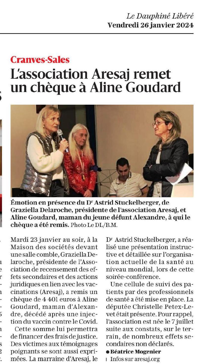 L’ARESAJ est une association créée en juillet 2023, qui écoute et soutient les victimes des injections anti-Covid.